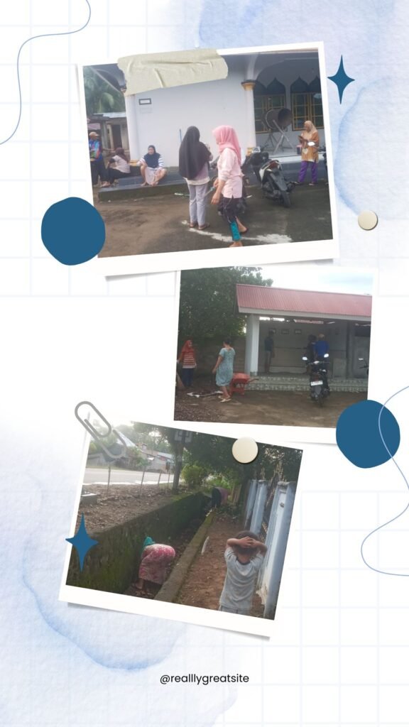 Kerja bakti yang dimulai sejak pagi itu difokuskan pada pembersihan halaman masjid, serta penataan area sekitar agar lebih nyaman digunakan untuk kegiatan ibadah dan aktivitas masyarakat.